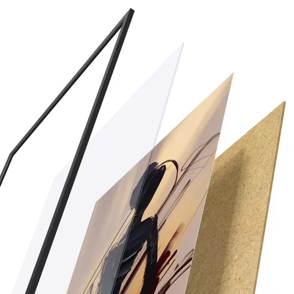 Plakát se skládá z rámu, plexiskla, tištěného obrazu a dřevotřískového podkladu. Díky úchytům na zadní straně lze plakát ihned zavěsit na zeď.