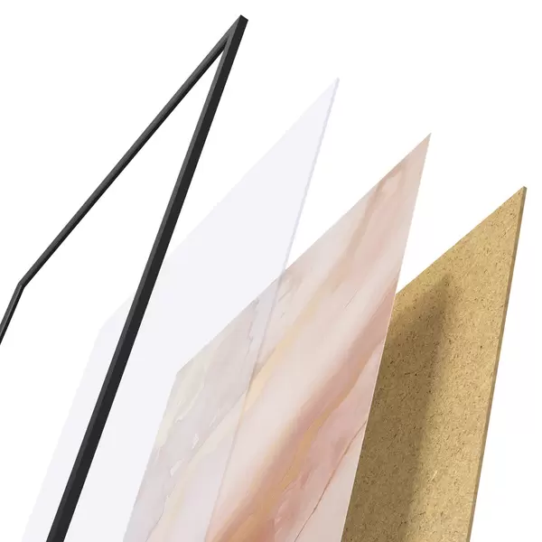 Plakát se skládá z rámu, plexiskla, tištěného obrazu a dřevotřískového podkladu. Díky úchytům na zadní straně lze plakát ihned zavěsit na zeď.