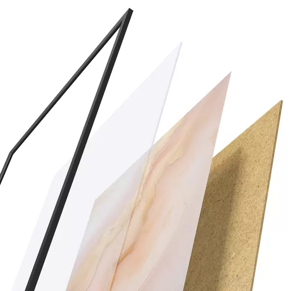 Plakát se skládá z rámu, plexiskla, tištěného obrazu a dřevotřískového podkladu. Díky úchytům na zadní straně lze plakát ihned zavěsit na zeď.