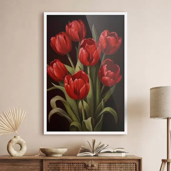 Plakát se skládá z rámu, plexiskla, tištěného obrazu a dřevotřískového podkladu. Díky úchytům na zadní straně lze plakát ihned zavěsit na zeď.