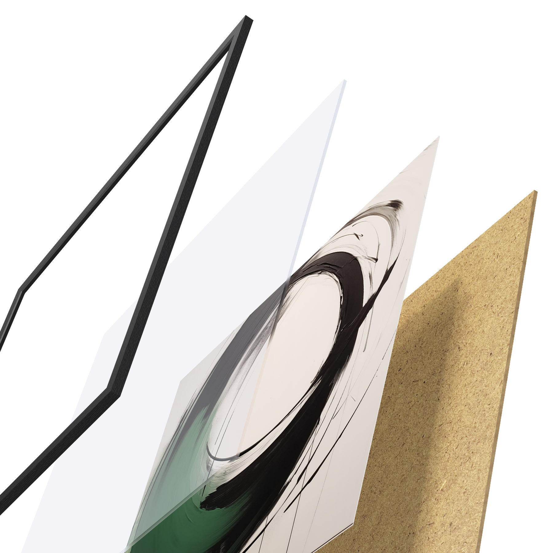 Plakát se skládá z rámu, plexiskla, tištěného obrazu a dřevotřískového podkladu. Díky úchytům na zadní straně lze plakát ihned zavěsit na zeď.