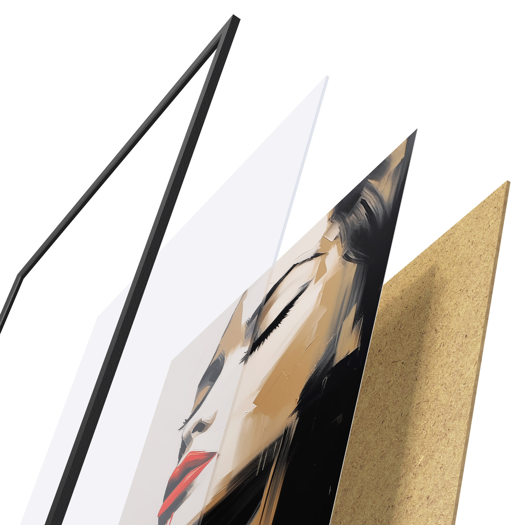 Plakát se skládá z rámu, plexiskla, tištěného obrazu a dřevotřískového podkladu. Díky úchytům na zadní straně lze plakát ihned zavěsit na zeď.