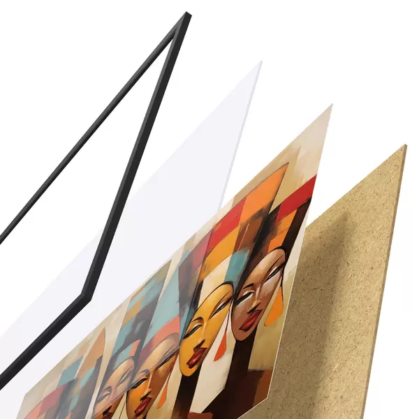 Plakát se skládá z rámu, plexiskla, tištěného obrazu a dřevotřískového podkladu. Díky úchytům na zadní straně lze plakát ihned zavěsit na zeď.