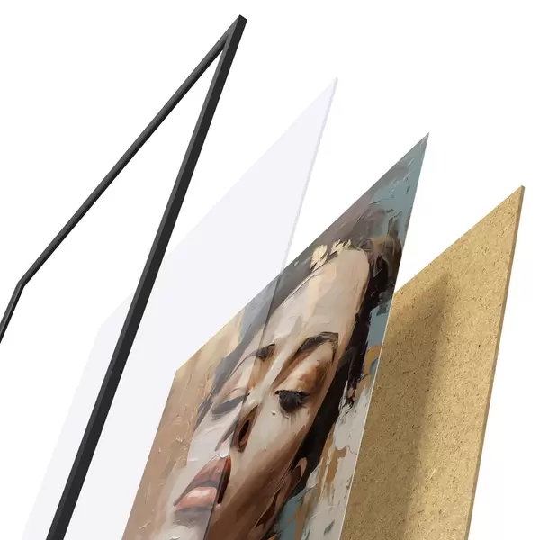 Plakát se skládá z rámu, plexiskla, tištěného obrazu a dřevotřískového podkladu. Díky úchytům na zadní straně lze plakát ihned zavěsit na zeď.