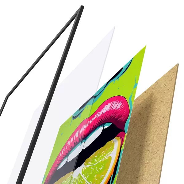 Plakát se skládá z rámu, plexiskla, tištěného obrazu a dřevotřískového podkladu. Díky úchytům na zadní straně lze plakát ihned zavěsit na zeď.