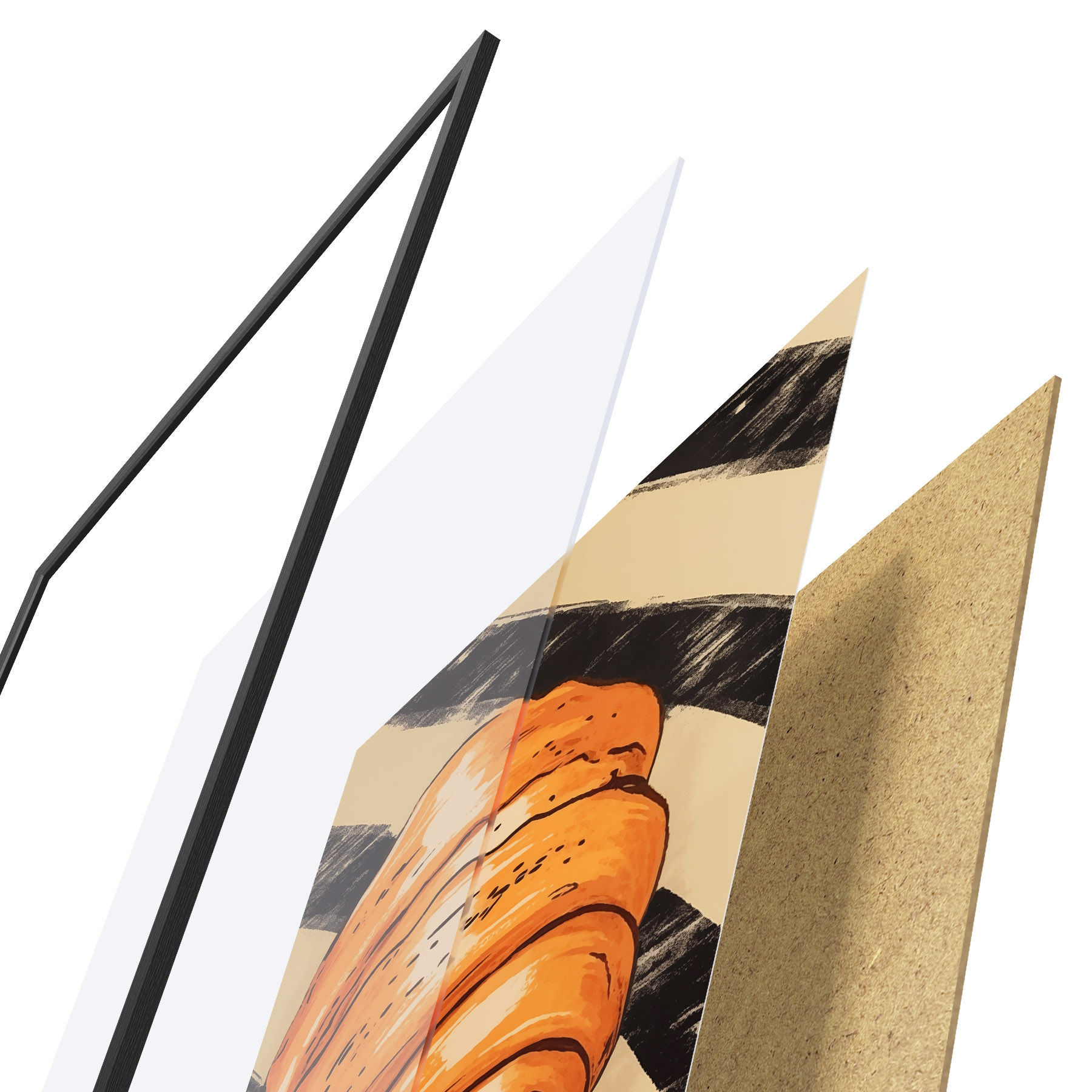 Plakát se skládá z rámu, plexiskla, tištěného obrazu a dřevotřískového podkladu. Díky úchytům na zadní straně lze plakát ihned zavěsit na zeď.