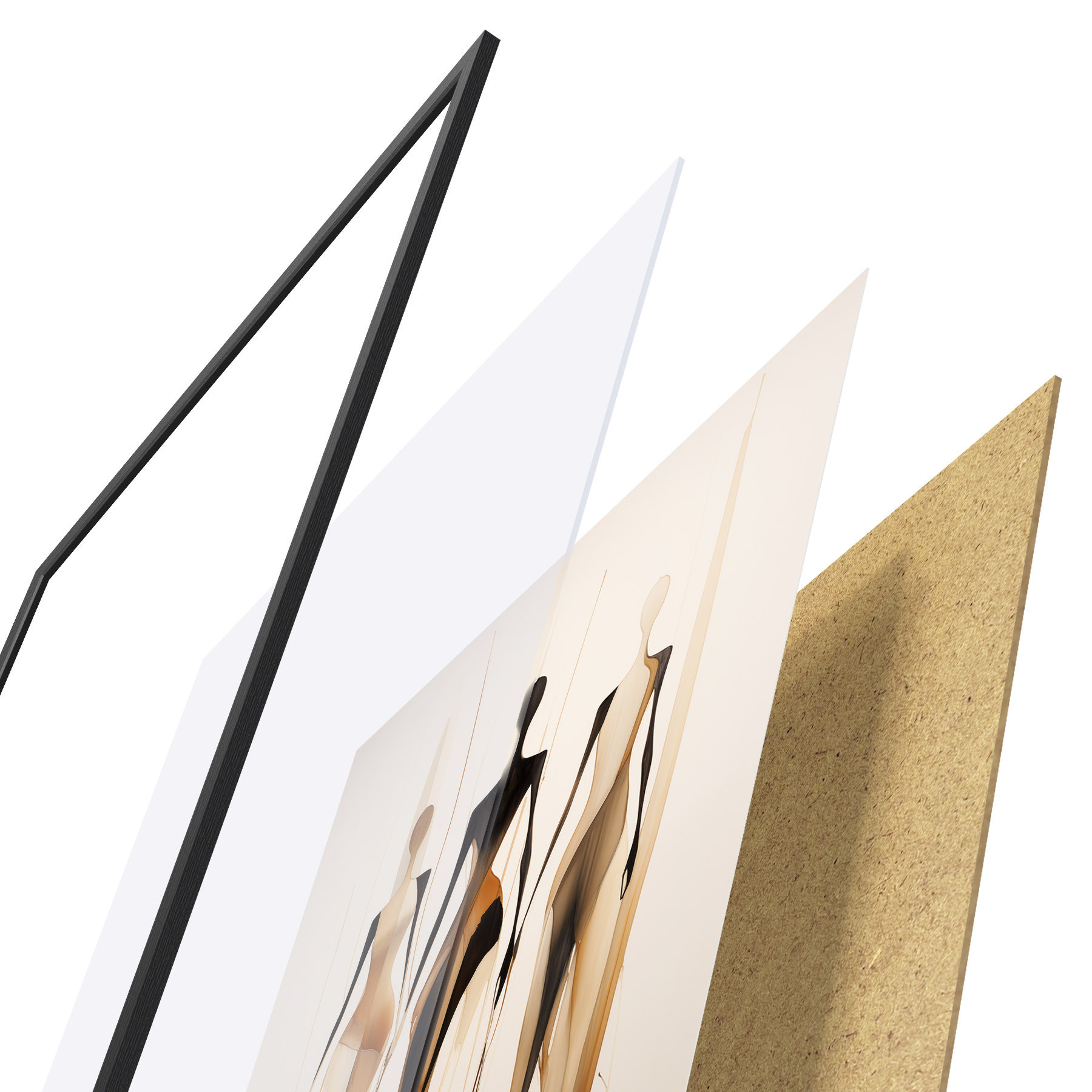 Plakát se skládá z rámu, plexiskla, tištěného obrazu a dřevotřískového podkladu. Díky úchytům na zadní straně lze plakát ihned zavěsit na zeď.