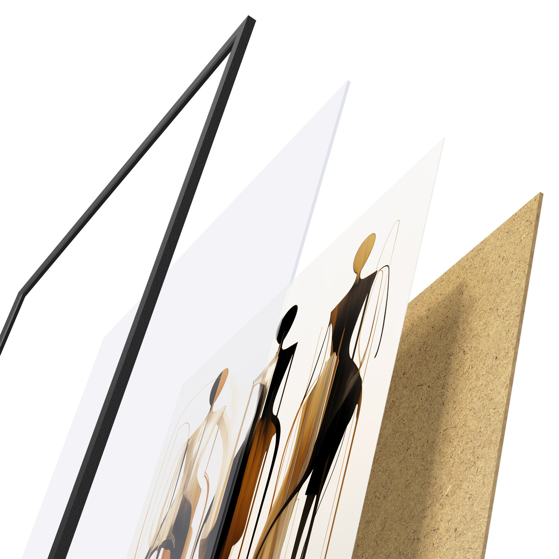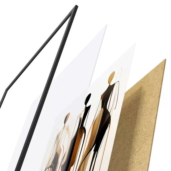 Plakát se skládá z rámu, plexiskla, tištěného obrazu a dřevotřískového podkladu. Díky úchytům na zadní straně lze plakát ihned zavěsit na zeď.
