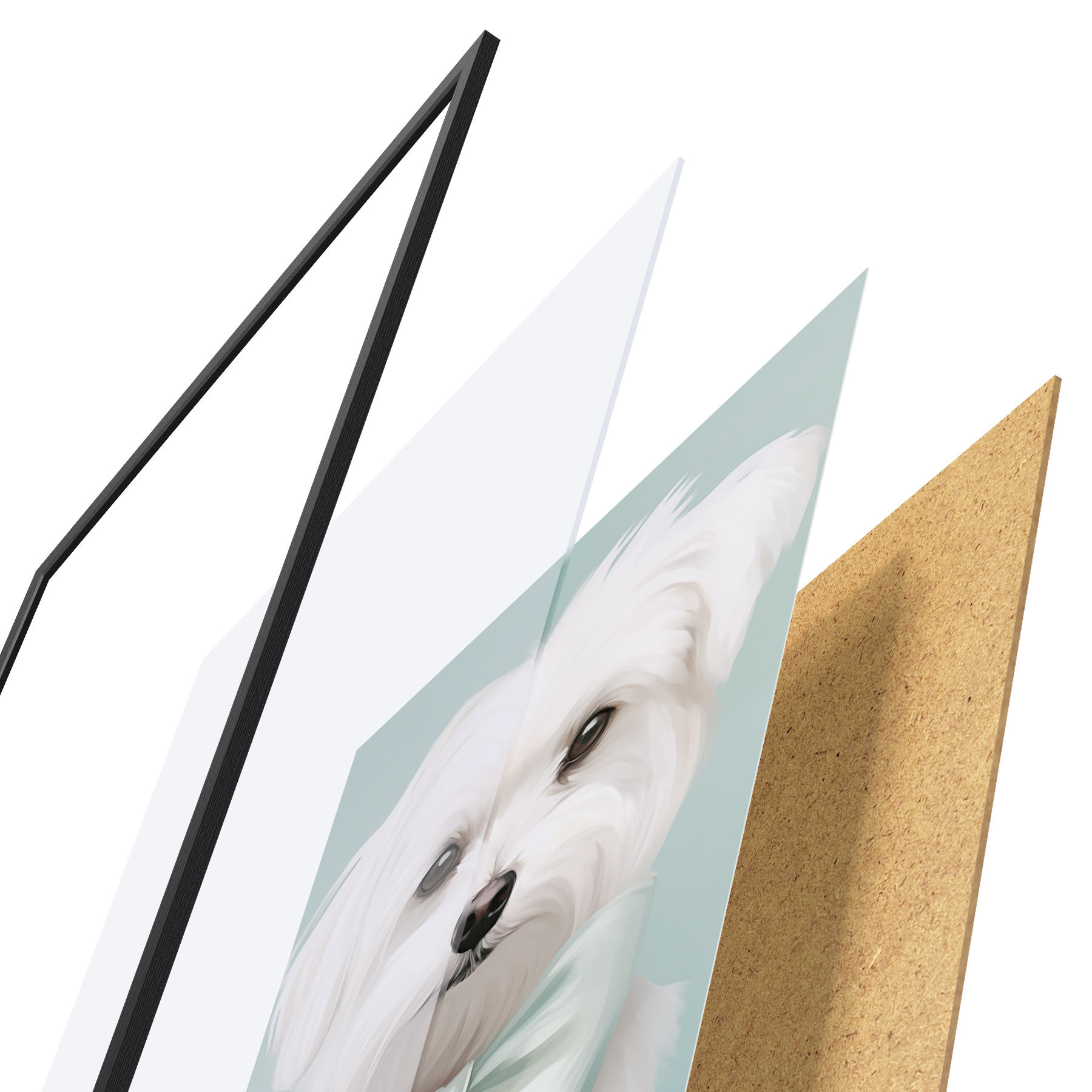 Plakát se skládá z rámu, plexiskla, tištěného obrazu a dřevotřískového podkladu. Díky úchytům na zadní straně lze plakát ihned zavěsit na zeď.