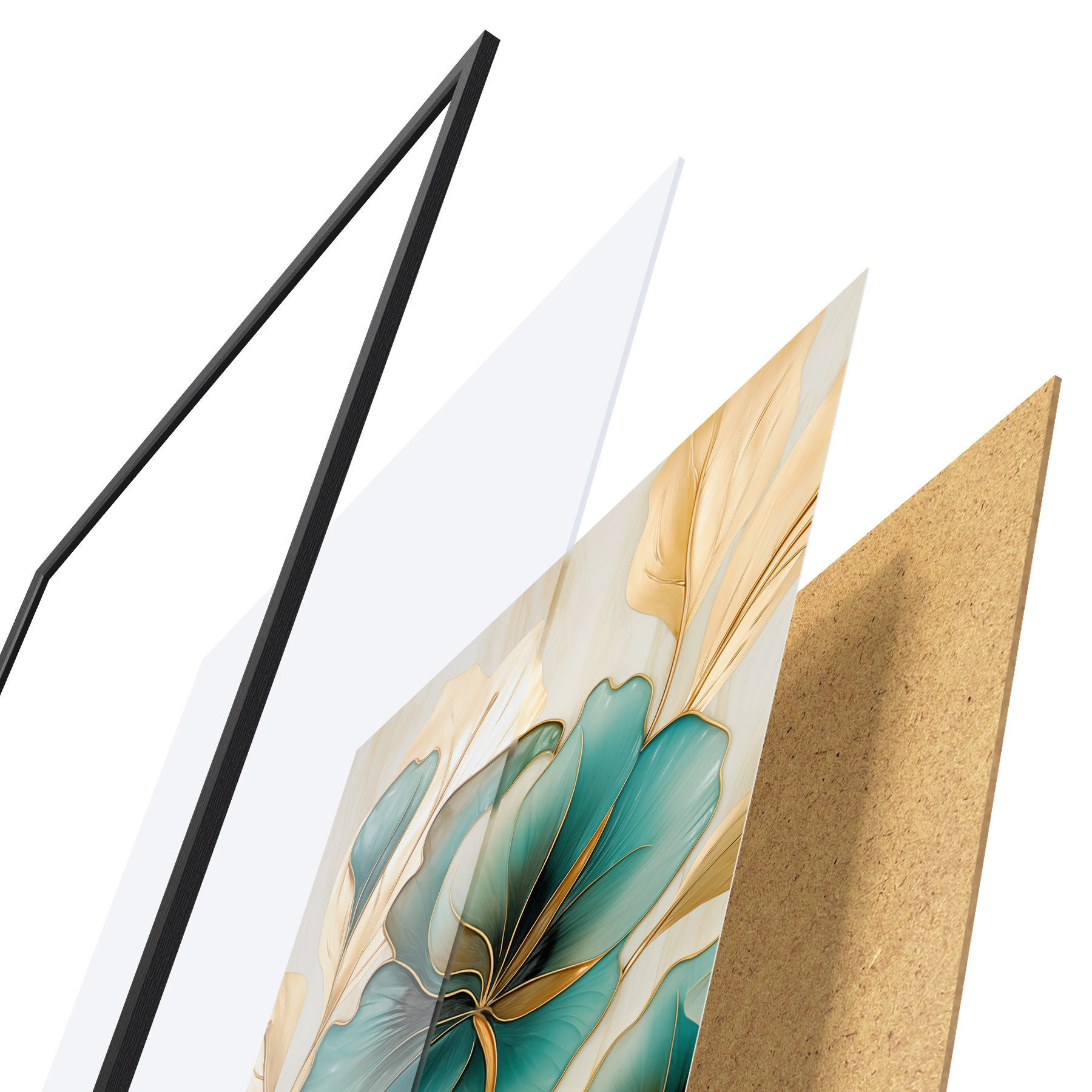 Plakát se skládá z rámu, plexiskla, tištěného obrazu a dřevotřískového podkladu. Díky úchytům na zadní straně lze plakát ihned zavěsit na zeď.
