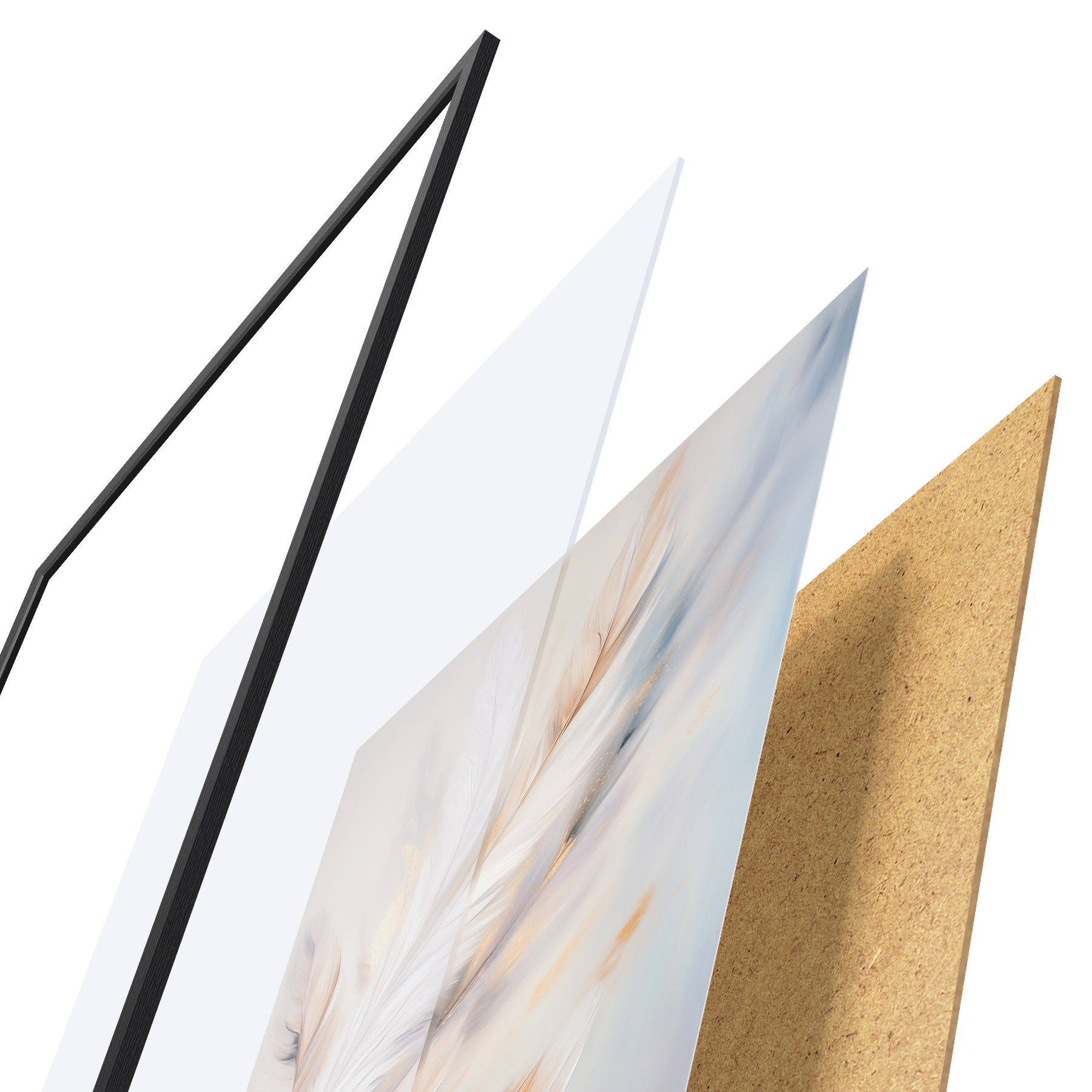 Plakát se skládá z rámu, plexiskla, tištěného obrazu a dřevotřískového podkladu. Díky úchytům na zadní straně lze plakát ihned zavěsit na zeď.