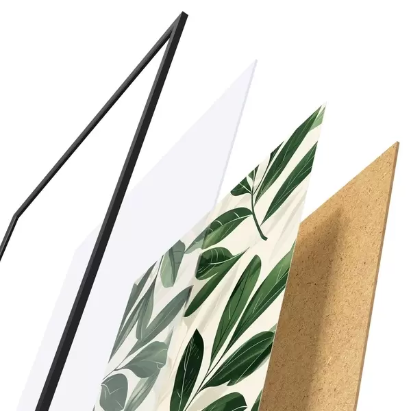 Plakát se skládá z rámu, plexiskla, tištěného obrazu a dřevotřískového podkladu. Díky úchytům na zadní straně lze plakát ihned zavěsit na zeď.