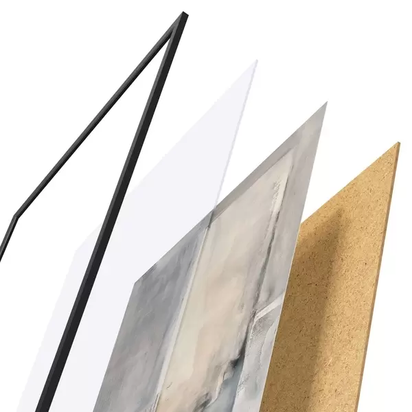 Plakát se skládá z rámu, plexiskla, tištěného obrazu a dřevotřískového podkladu. Díky úchytům na zadní straně lze plakát ihned zavěsit na zeď.