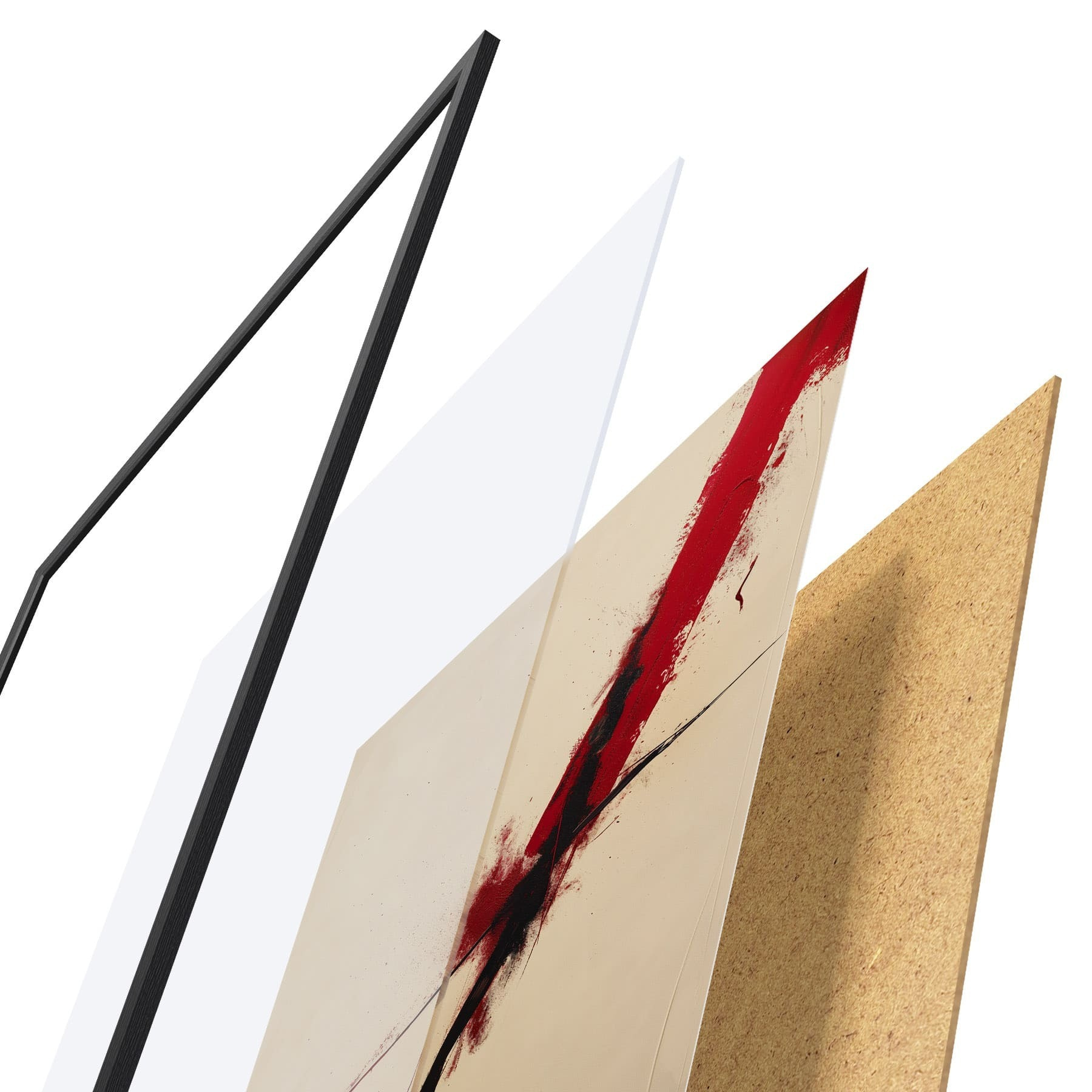 Plakát se skládá z rámu, plexiskla, tištěného obrazu a dřevotřískového podkladu. Díky úchytům na zadní straně lze plakát ihned zavěsit na zeď.