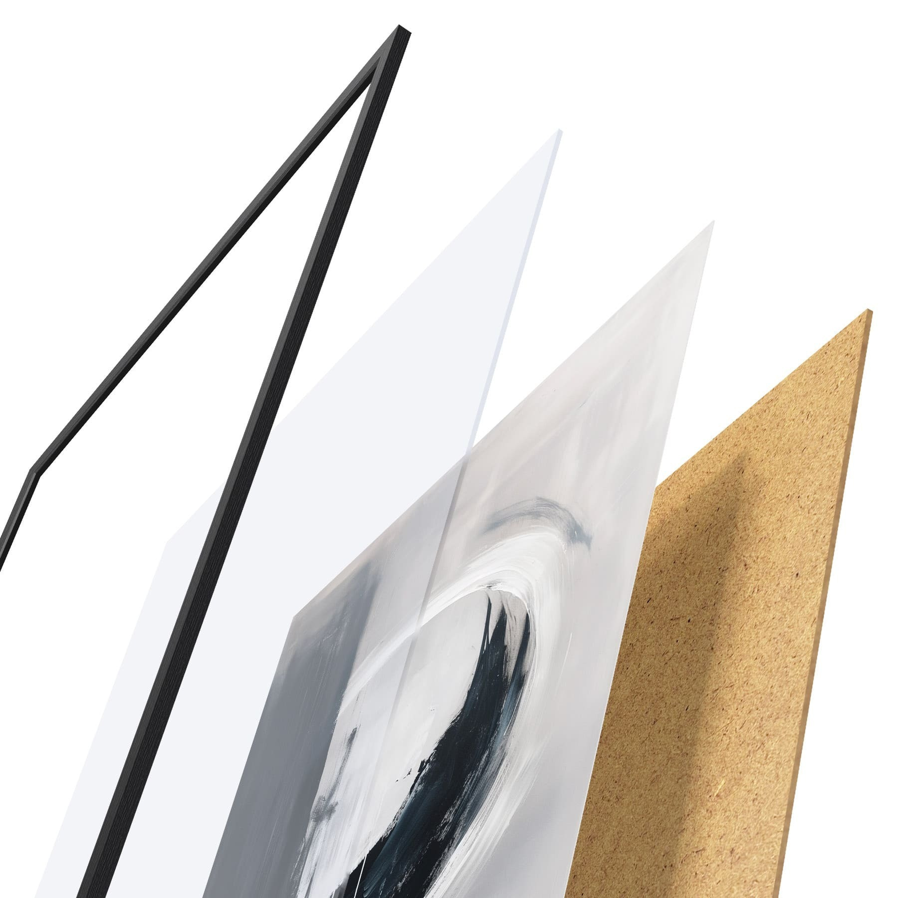 Plakát se skládá z rámu, plexiskla, tištěného obrazu a dřevotřískového podkladu. Díky úchytům na zadní straně lze plakát ihned zavěsit na zeď.