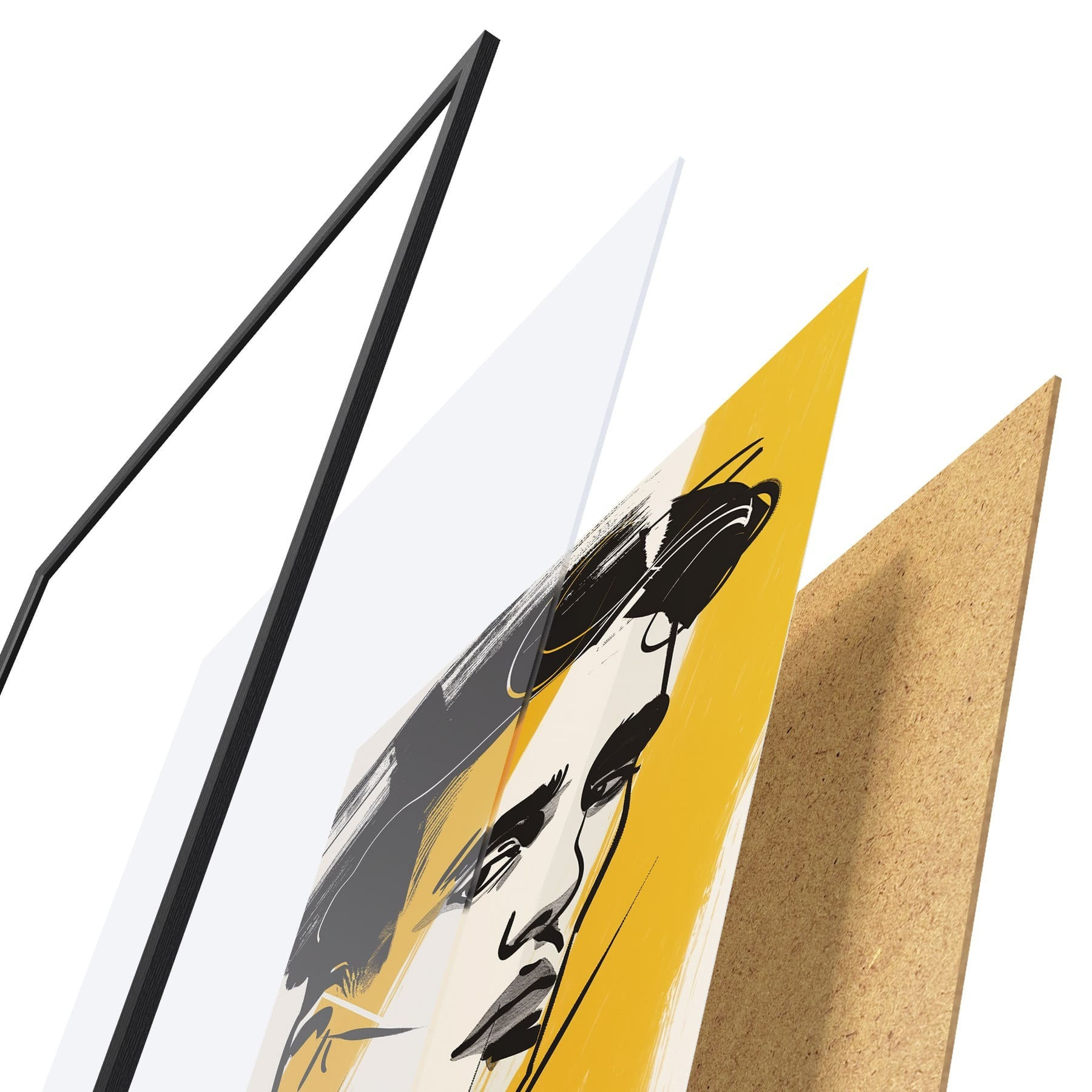 Plakát se skládá z rámu, plexiskla, tištěného obrazu a dřevotřískového podkladu. Díky úchytům na zadní straně lze plakát ihned zavěsit na zeď.