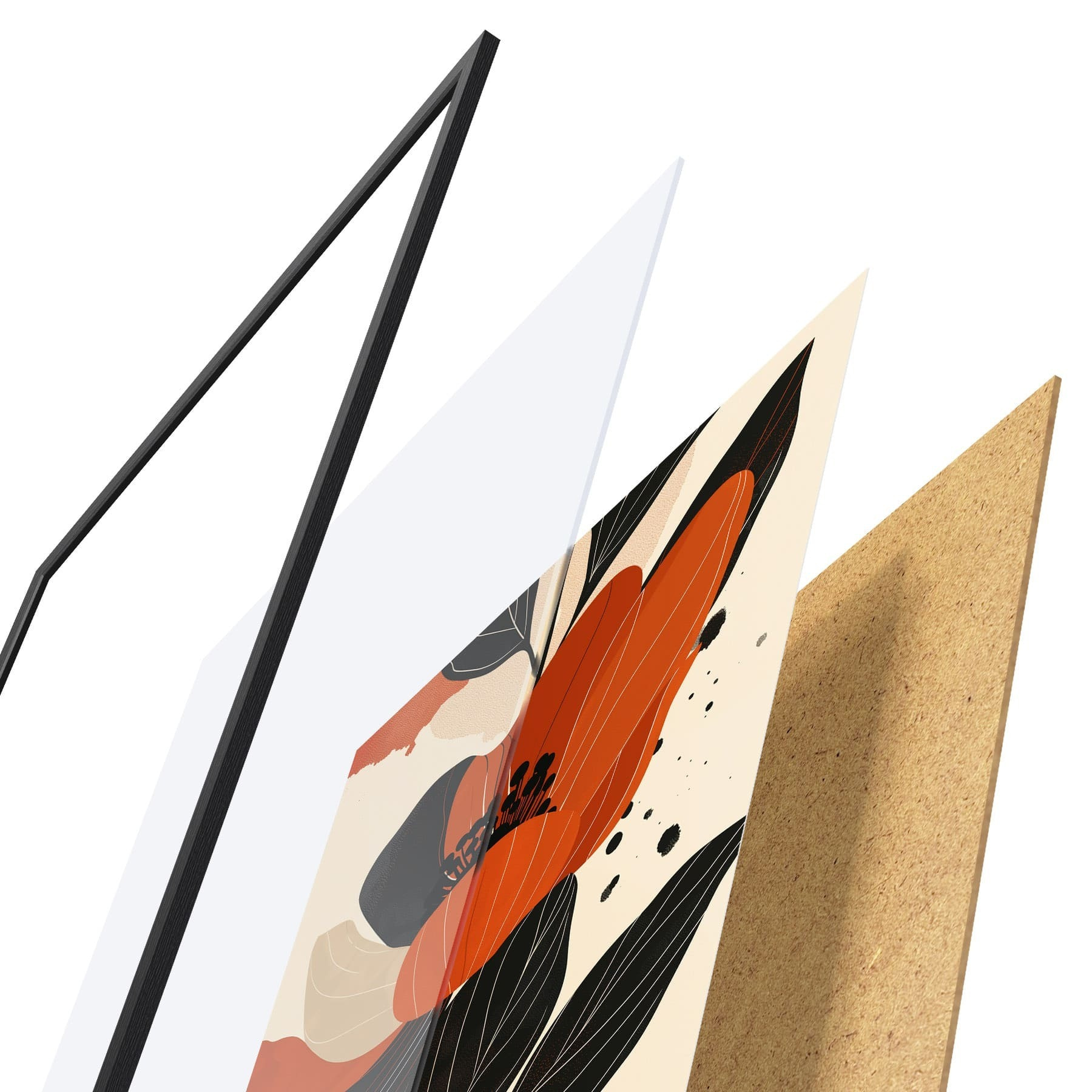 Plakát se skládá z rámu, plexiskla, tištěného obrazu a dřevotřískového podkladu. Díky úchytům na zadní straně lze plakát ihned zavěsit na zeď.