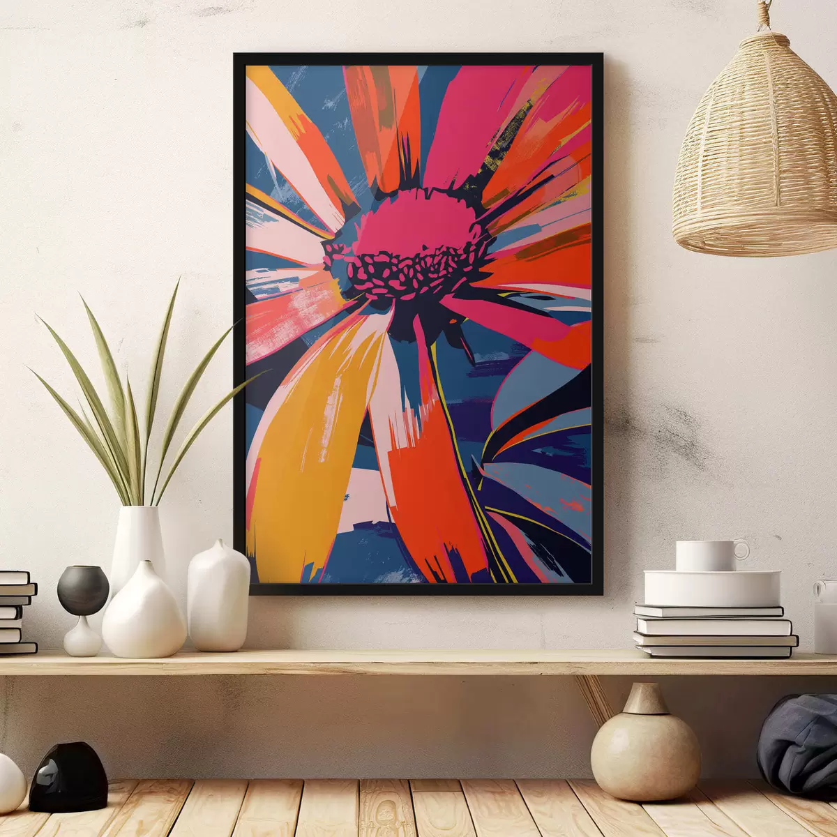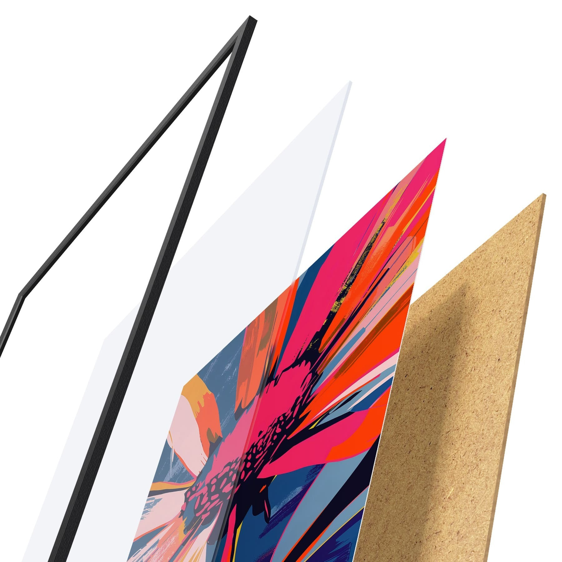Plakát se skládá z rámu, plexiskla, tištěného obrazu a dřevotřískového podkladu. Díky úchytům na zadní straně lze plakát ihned zavěsit na zeď.