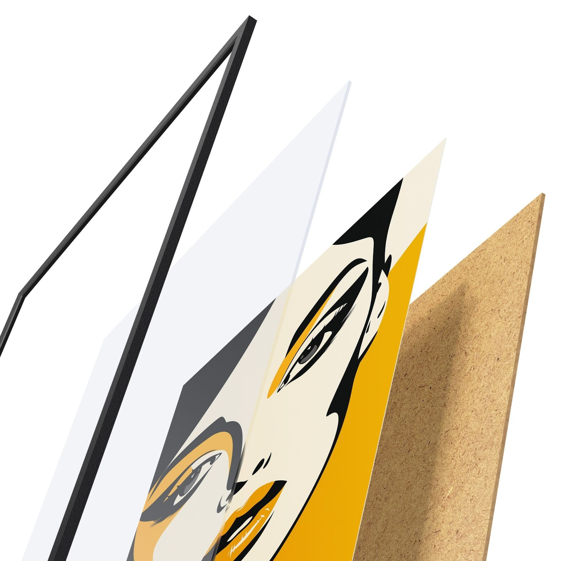 Plakát se skládá z rámu, plexiskla, tištěného obrazu a dřevotřískového podkladu. Díky úchytům na zadní straně lze plakát ihned zavěsit na zeď.