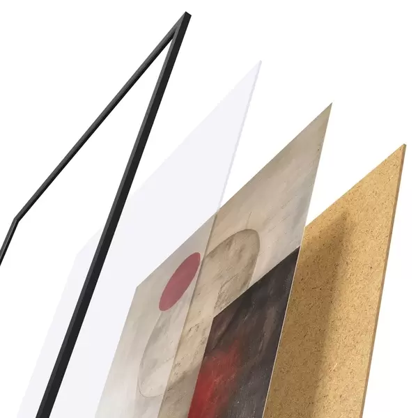 Plakát se skládá z rámu, plexiskla, tištěného obrazu a dřevotřískového podkladu. Díky úchytům na zadní straně lze plakát ihned zavěsit na zeď.