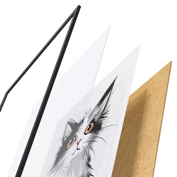 Plakát se skládá z rámu, plexiskla, tištěného obrazu a dřevotřískového podkladu. Díky úchytům na zadní straně lze plakát ihned zavěsit na zeď.