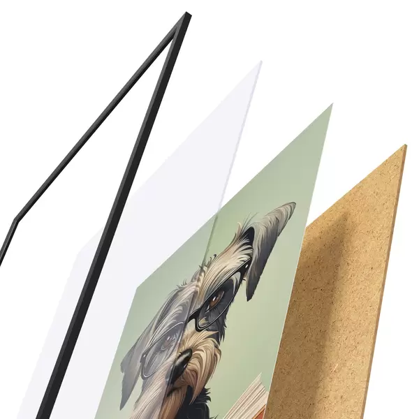 Plakát se skládá z rámu, plexiskla, tištěného obrazu a dřevotřískového podkladu. Díky úchytům na zadní straně lze plakát ihned zavěsit na zeď.