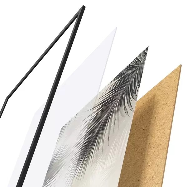 Plakát se skládá z rámu, plexiskla, tištěného obrazu a dřevotřískového podkladu. Díky úchytům na zadní straně lze plakát ihned zavěsit na zeď.
