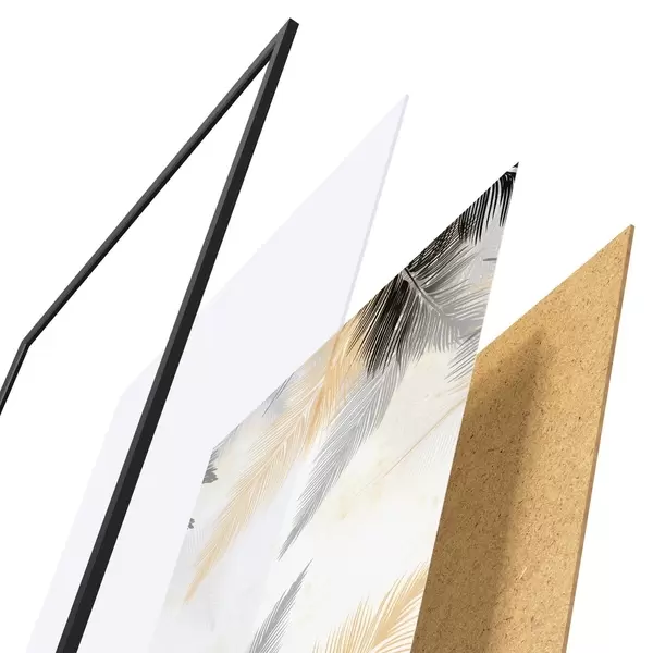 Plakát se skládá z rámu, plexiskla, tištěného obrazu a dřevotřískového podkladu. Díky úchytům na zadní straně lze plakát ihned zavěsit na zeď.