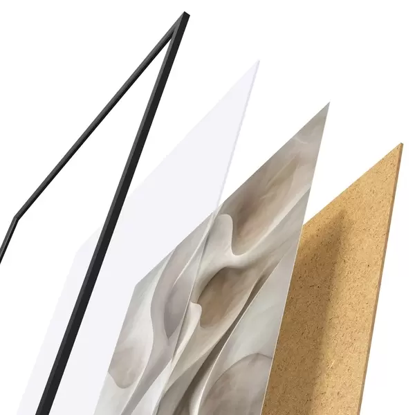 Plakát se skládá z rámu, plexiskla, tištěného obrazu a dřevotřískového podkladu. Díky úchytům na zadní straně lze plakát ihned zavěsit na zeď.