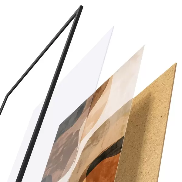 Plakát se skládá z rámu, plexiskla, tištěného obrazu a dřevotřískového podkladu. Díky úchytům na zadní straně lze plakát ihned zavěsit na zeď.