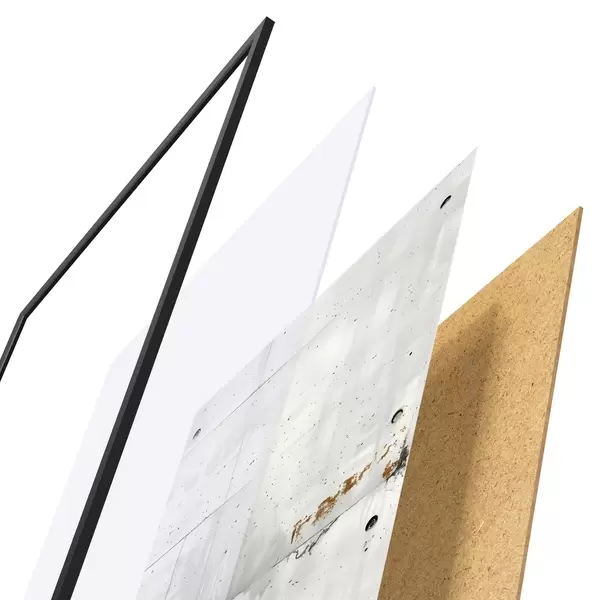 Plakát se skládá z rámu, plexiskla, tištěného obrazu a dřevotřískového podkladu. Díky úchytům na zadní straně lze plakát ihned zavěsit na zeď.