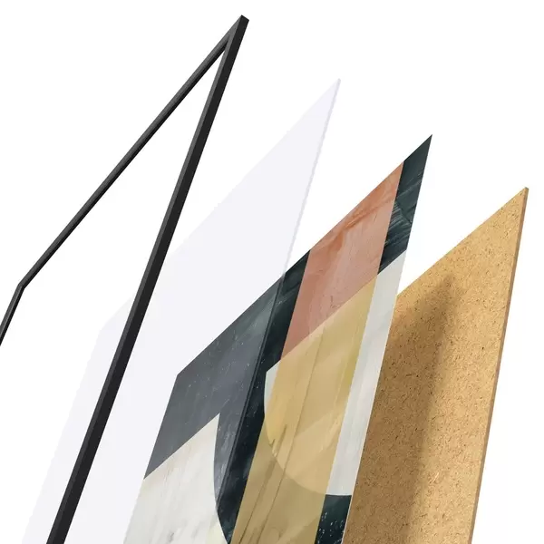 Plakát se skládá z rámu, plexiskla, tištěného obrazu a dřevotřískového podkladu. Díky úchytům na zadní straně lze plakát ihned zavěsit na zeď.