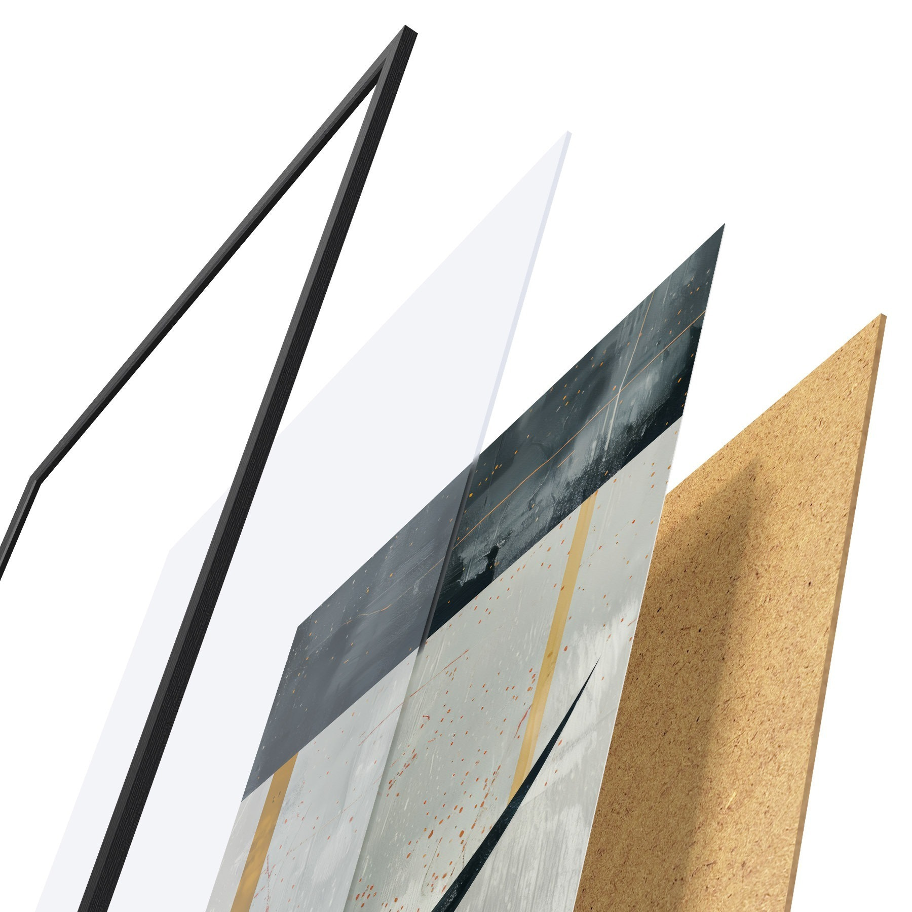 Plakát se skládá z rámu, plexiskla, tištěného obrazu a dřevotřískového podkladu. Díky úchytům na zadní straně lze plakát ihned zavěsit na zeď.