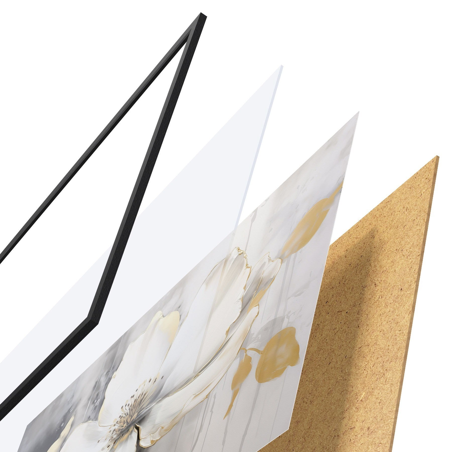 Plakát se skládá z rámu, plexiskla, tištěného obrazu a dřevotřískového podkladu. Díky úchytům na zadní straně lze plakát ihned zavěsit na zeď.