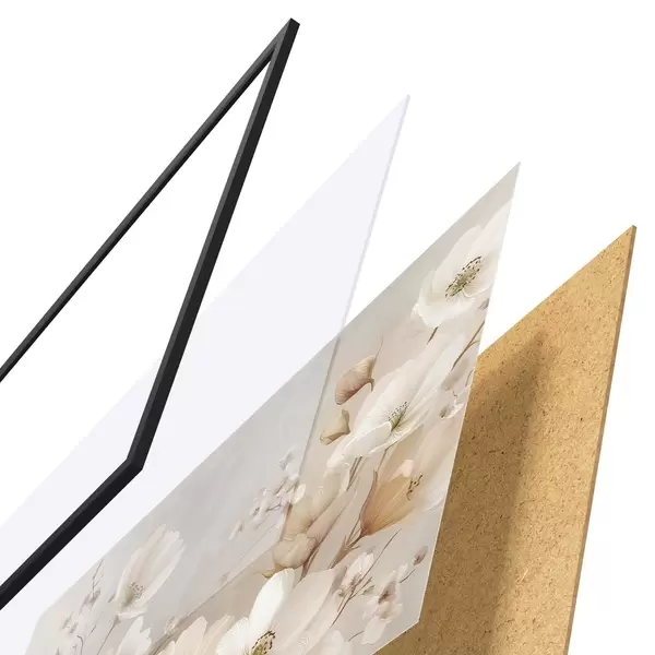 Plakát se skládá z rámu, plexiskla, tištěného obrazu a dřevotřískového podkladu. Díky úchytům na zadní straně lze plakát ihned zavěsit na zeď.