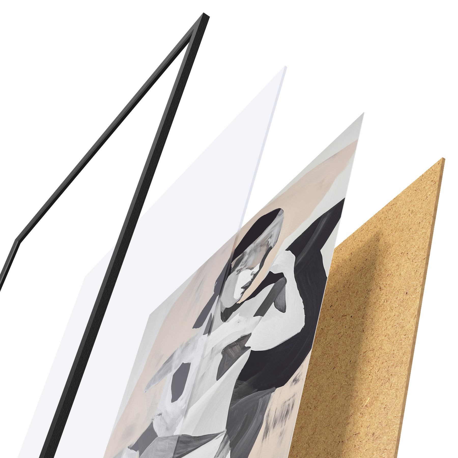 Plakát se skládá z rámu, plexiskla, tištěného obrazu a dřevotřískového podkladu. Díky úchytům na zadní straně lze plakát ihned zavěsit na zeď.