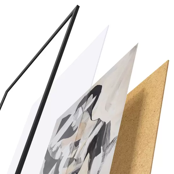 Plakát se skládá z rámu, plexiskla, tištěného obrazu a dřevotřískového podkladu. Díky úchytům na zadní straně lze plakát ihned zavěsit na zeď.
