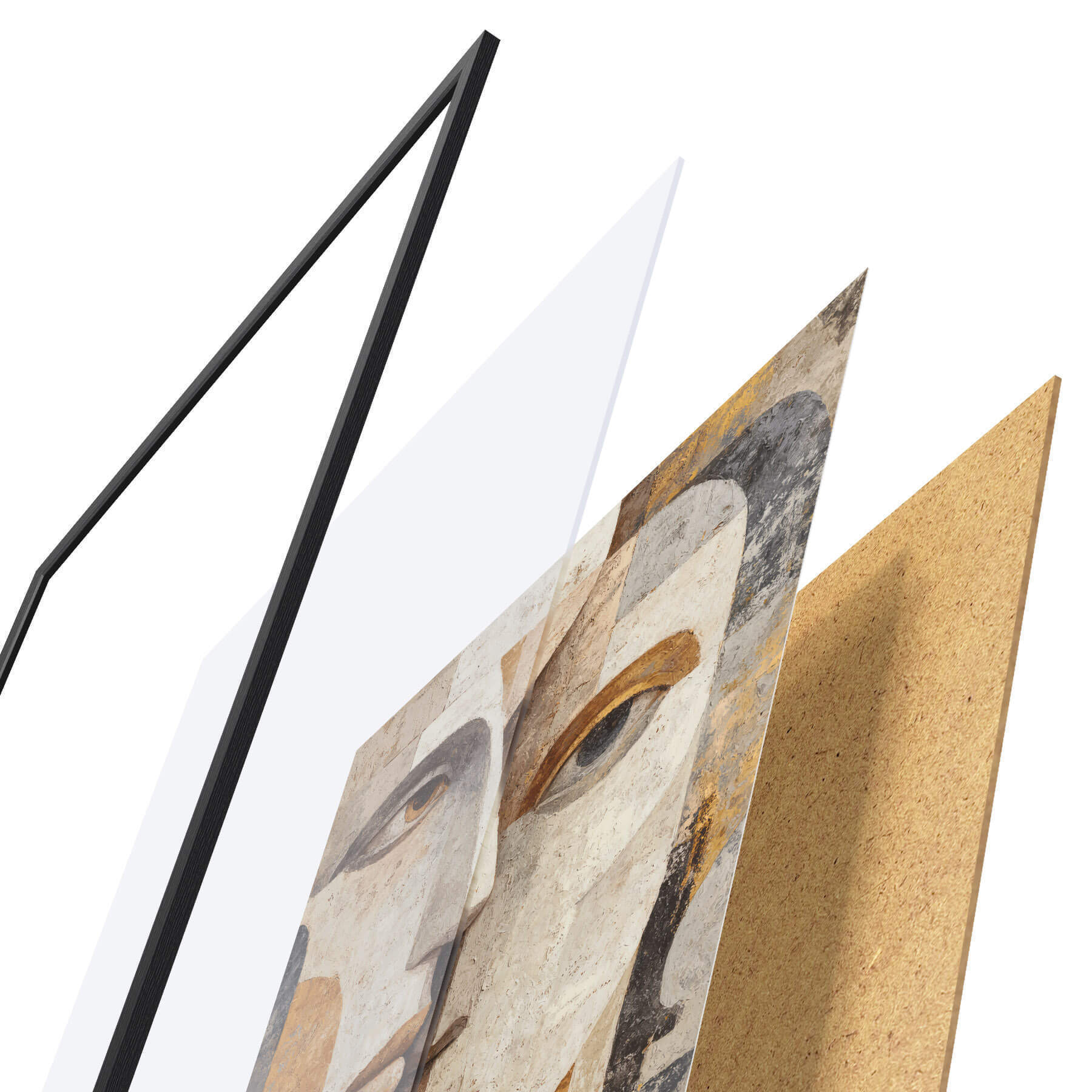 Plakát se skládá z rámu, plexiskla, tištěného obrazu a dřevotřískového podkladu. Díky úchytům na zadní straně lze plakát ihned zavěsit na zeď.