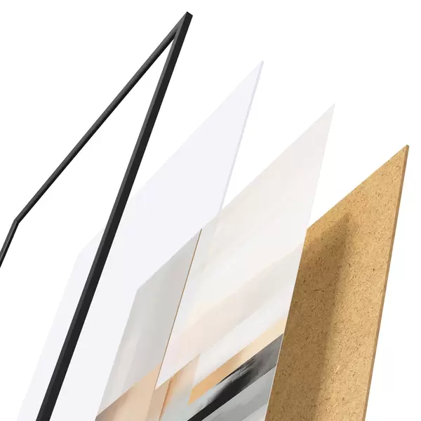Plakát se skládá z rámu, plexiskla, tištěného obrazu a dřevotřískového podkladu. Díky úchytům na zadní straně lze plakát ihned zavěsit na zeď.