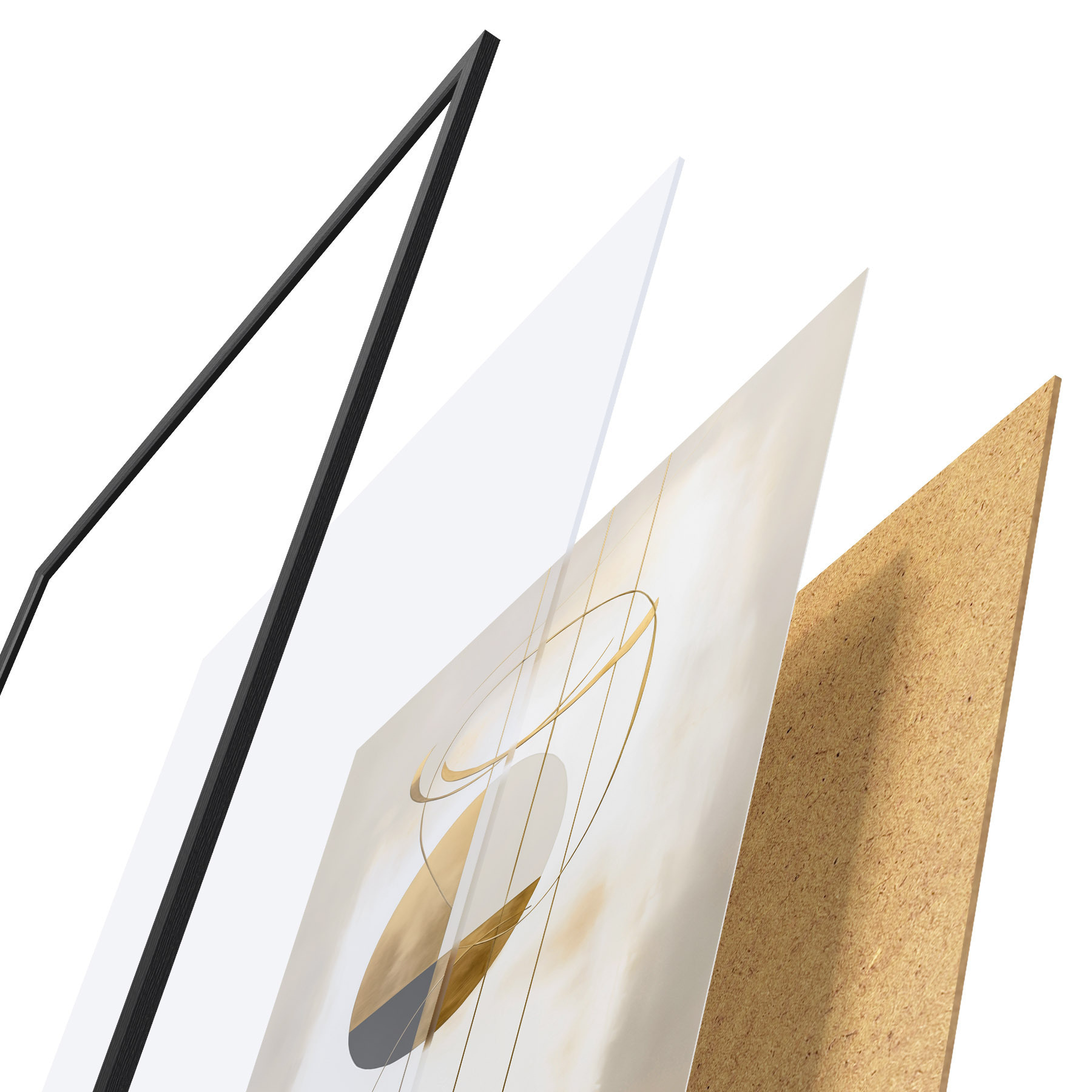Plakát se skládá z rámu, plexiskla, tištěného obrazu a dřevotřískového podkladu. Díky úchytům na zadní straně lze plakát ihned zavěsit na zeď.