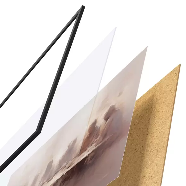 Plakát se skládá z rámu, plexiskla, tištěného obrazu a dřevotřískového podkladu. Díky úchytům na zadní straně lze plakát ihned zavěsit na zeď.