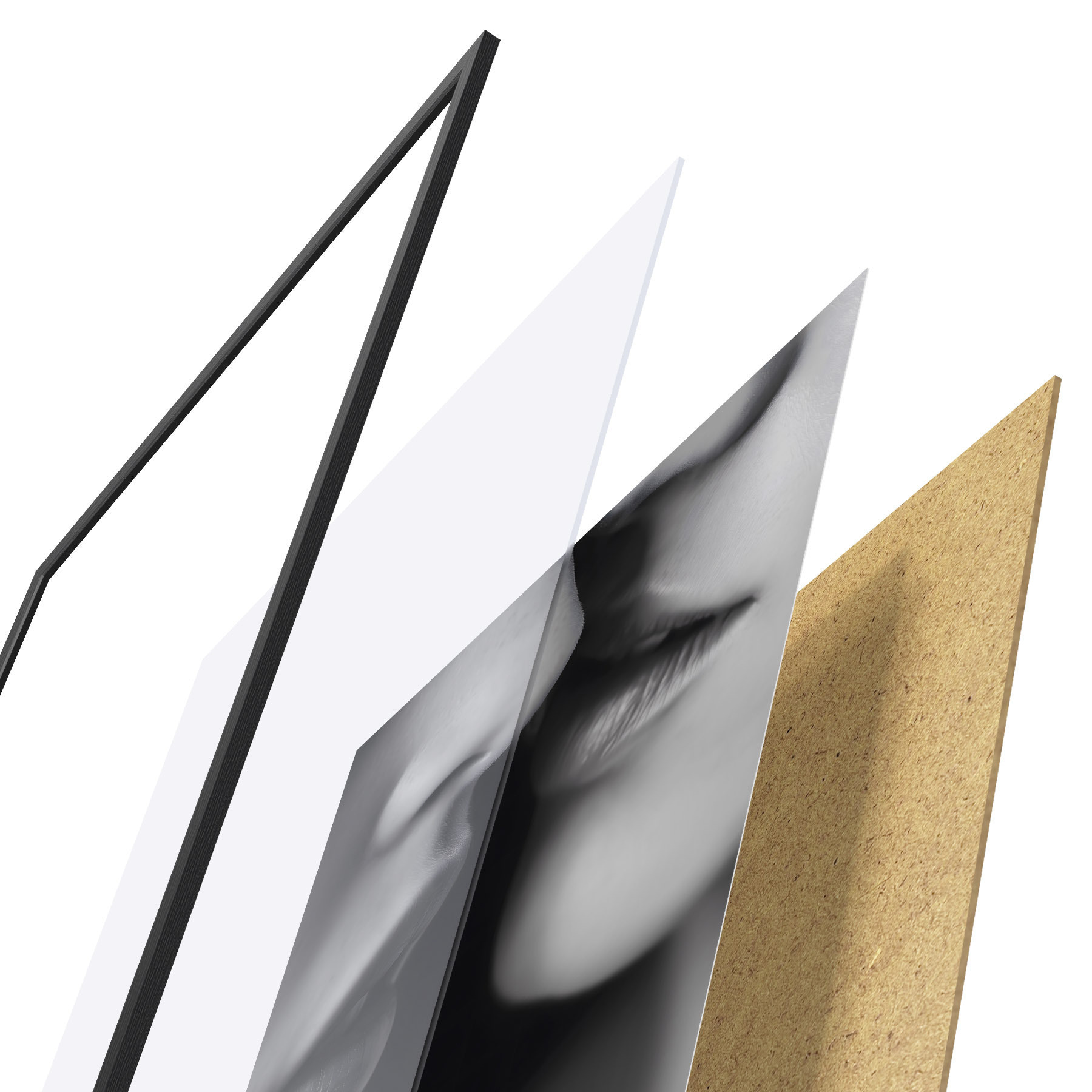 Plakát se skládá z rámu, plexiskla, tištěného obrazu a dřevotřískového podkladu. Díky úchytům na zadní straně lze plakát ihned zavěsit na zeď.