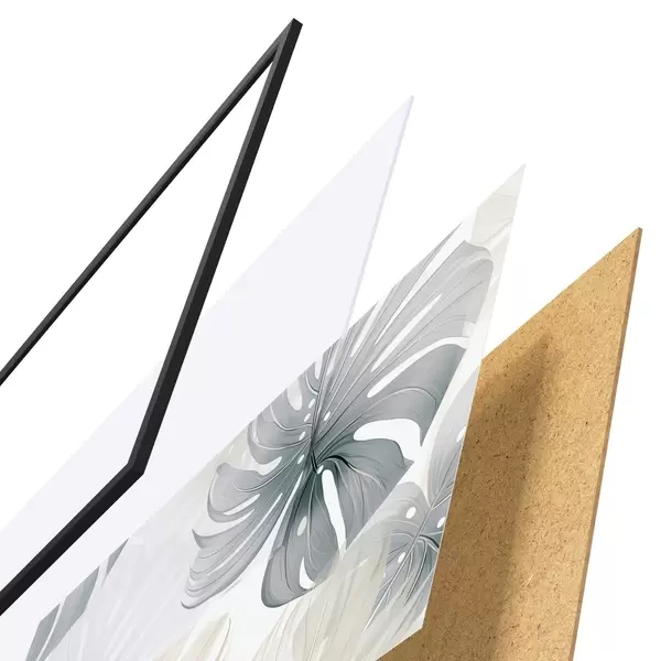 Plakát se skládá z rámu, plexiskla, tištěného obrazu a dřevotřískového podkladu. Díky úchytům na zadní straně lze plakát ihned zavěsit na zeď.