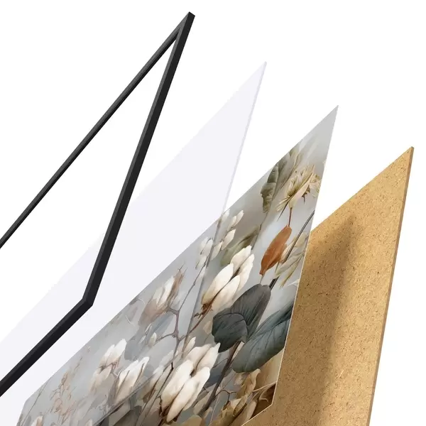Plakát se skládá z rámu, plexiskla, tištěného obrazu a dřevotřískového podkladu. Díky úchytům na zadní straně lze plakát ihned zavěsit na zeď.