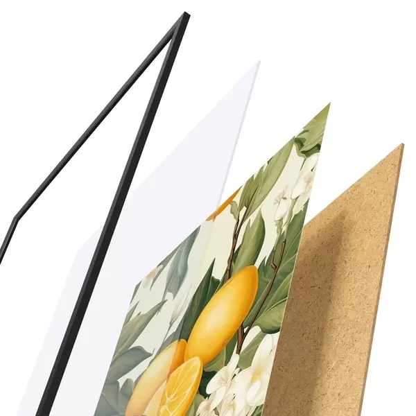 Plakát se skládá z rámu, plexiskla, tištěného obrazu a dřevotřískového podkladu. Díky úchytům na zadní straně lze plakát ihned zavěsit na zeď.