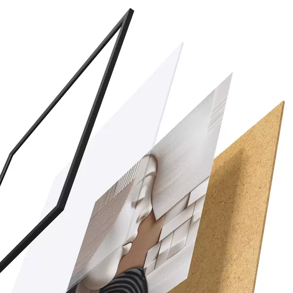 Plakát se skládá z rámu, plexiskla, tištěného obrazu a dřevotřískového podkladu. Díky úchytům na zadní straně lze plakát ihned zavěsit na zeď.