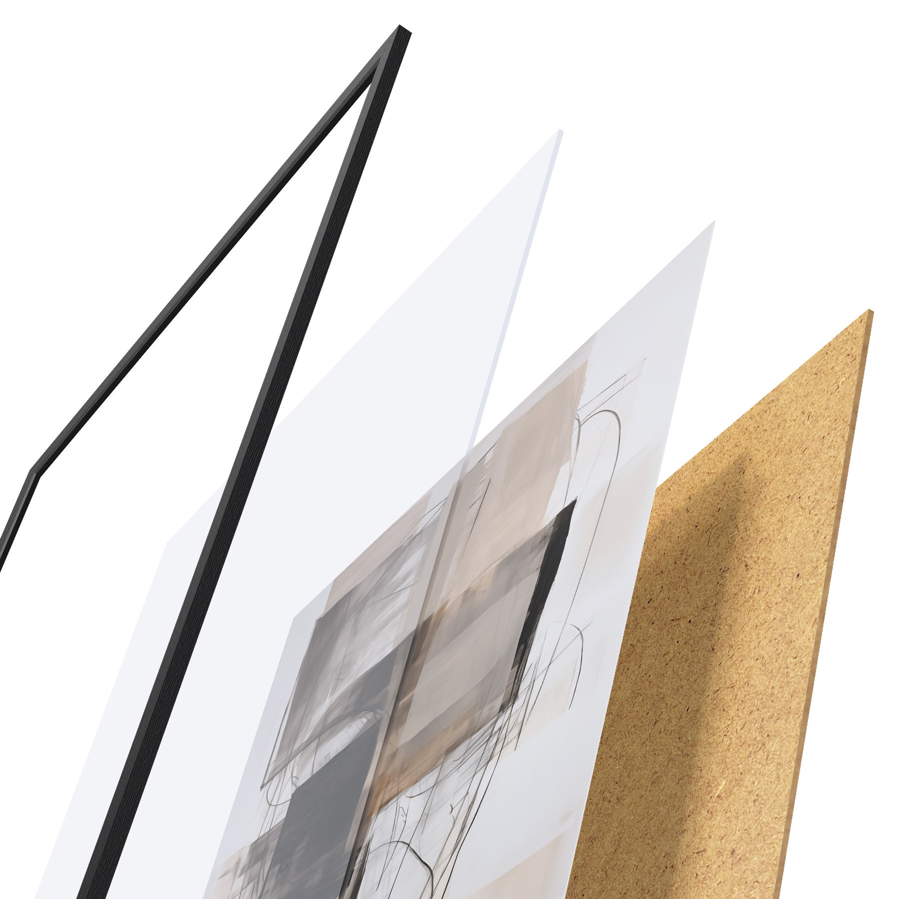 Plakát se skládá z rámu, plexiskla, tištěného obrazu a dřevotřískového podkladu. Díky úchytům na zadní straně lze plakát ihned zavěsit na zeď.