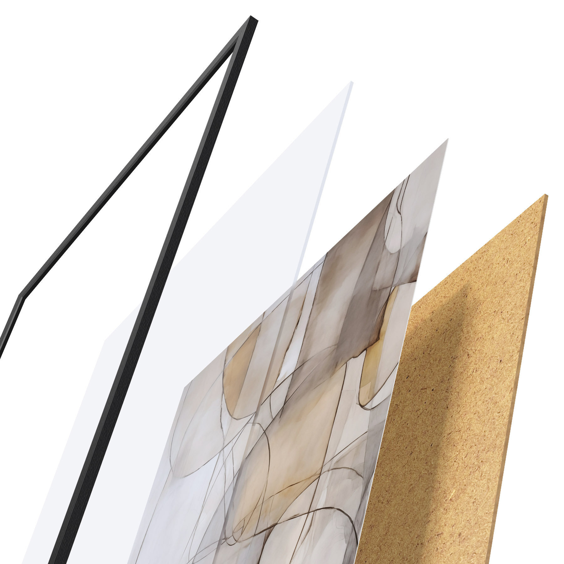 Plakát se skládá z rámu, plexiskla, tištěného obrazu a dřevotřískového podkladu. Díky úchytům na zadní straně lze plakát ihned zavěsit na zeď.