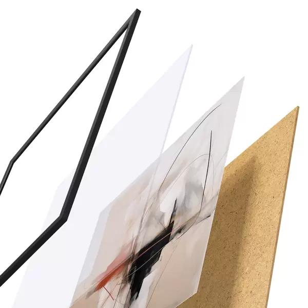 Plakát se skládá z rámu, plexiskla, tištěného obrazu a dřevotřískového podkladu. Díky úchytům na zadní straně lze plakát ihned zavěsit na zeď.