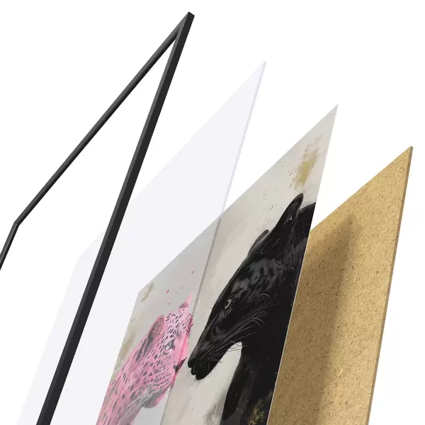 Plakát se skládá z rámu, plexiskla, tištěného obrazu a dřevotřískového podkladu. Díky úchytům na zadní straně lze plakát ihned zavěsit na zeď.